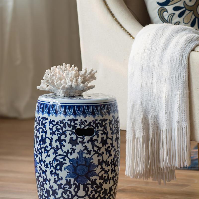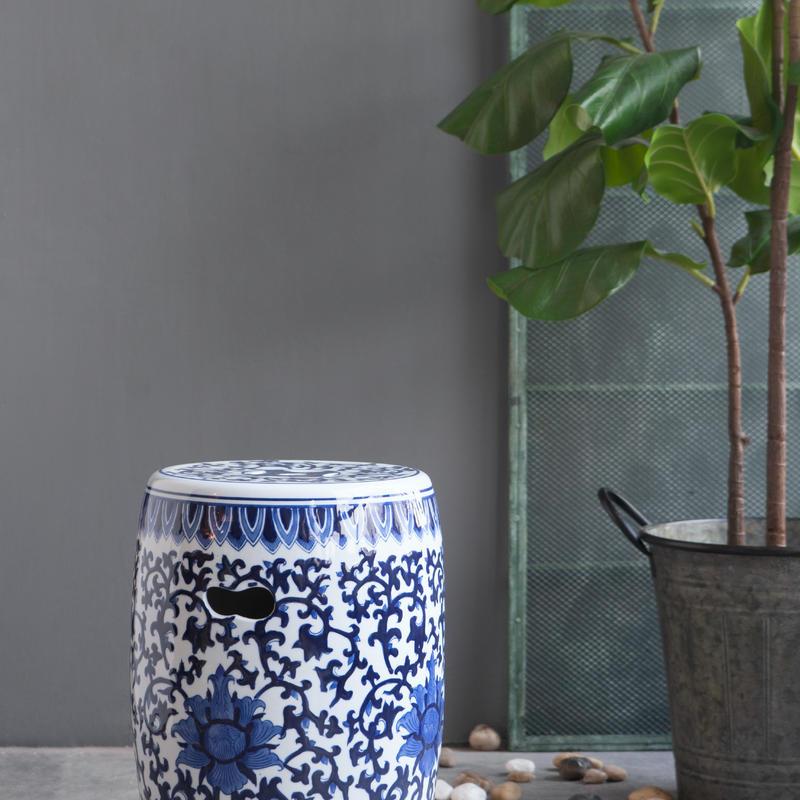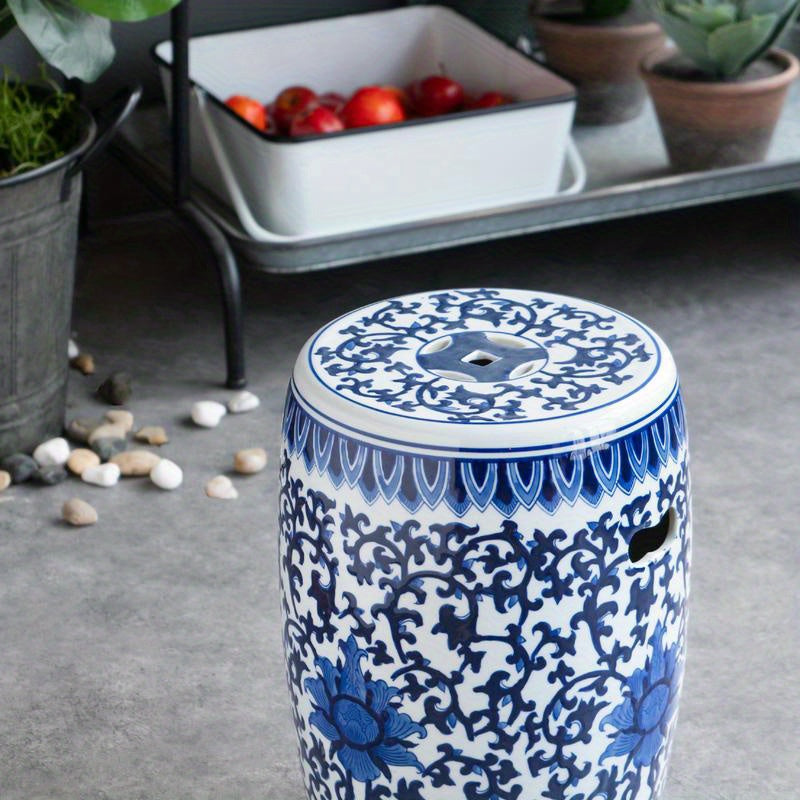 1pc Ceramic Garden Stool, Blue and White Small Side Table,