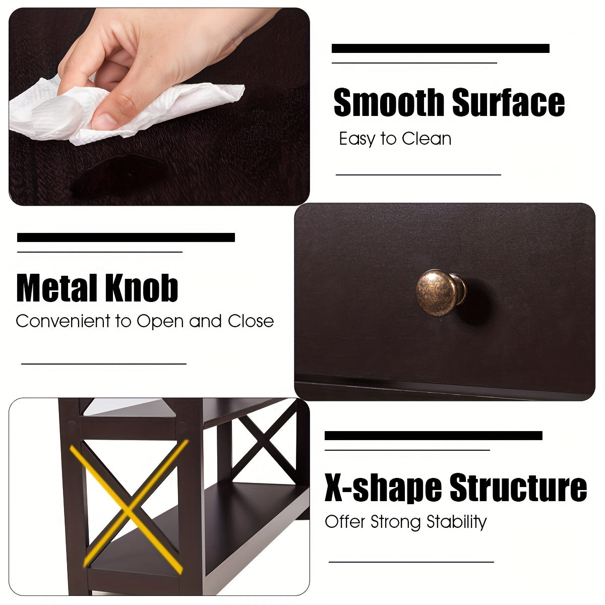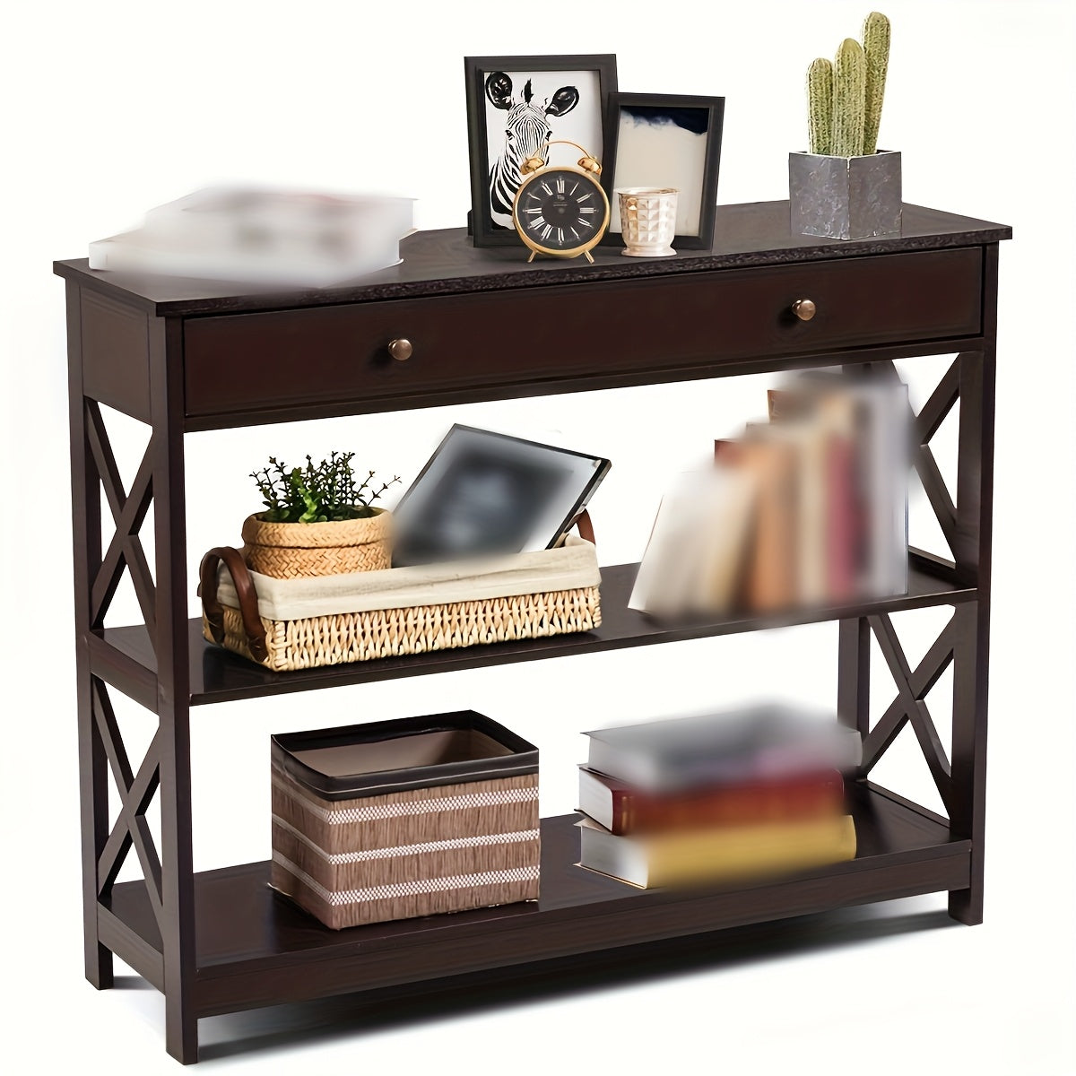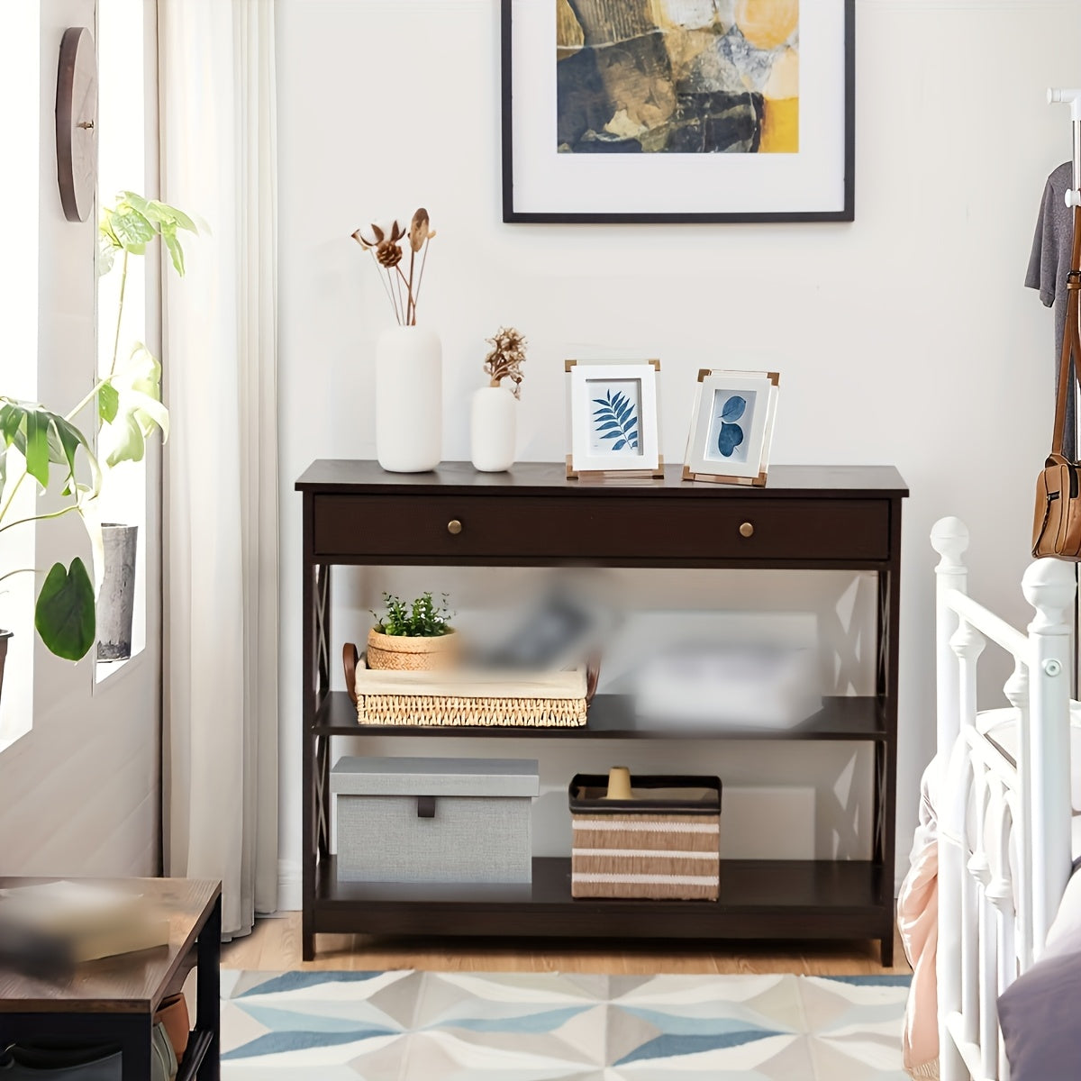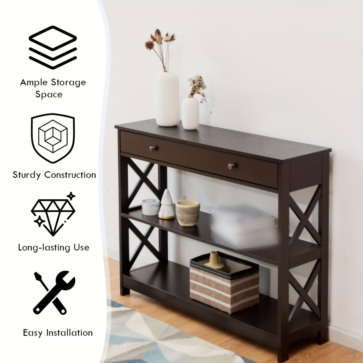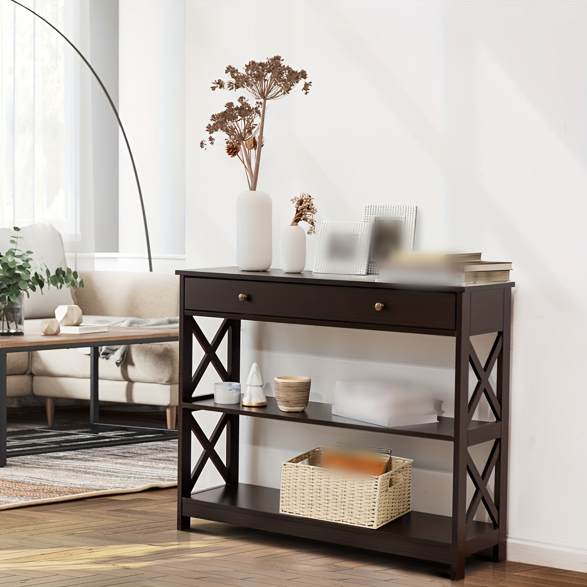 3-Tier Console Table X-Design Sofa Entryway Table with Drawer & Shelves