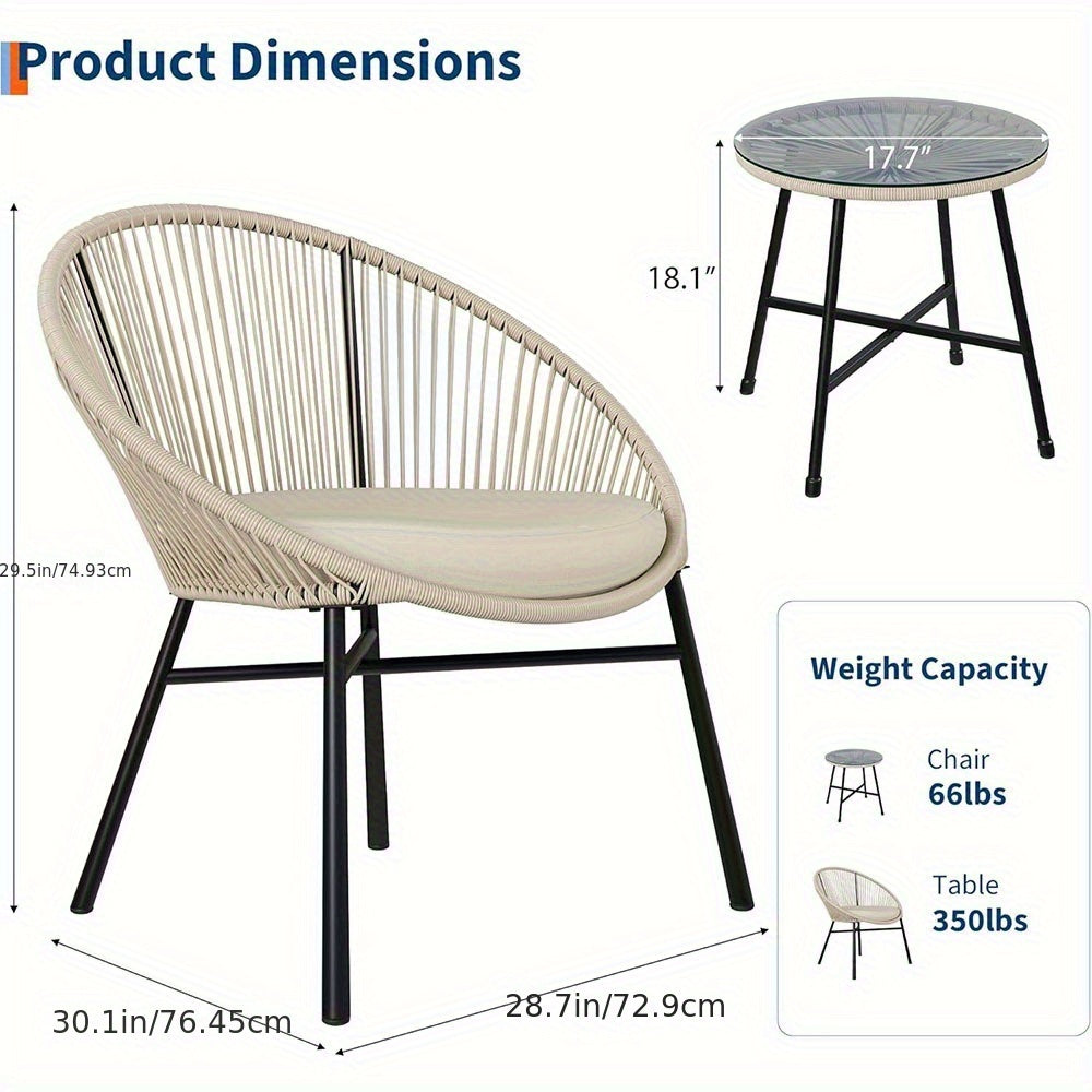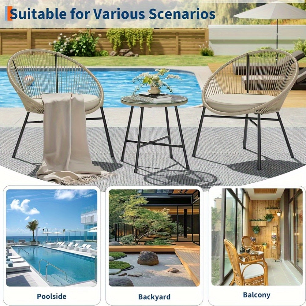 3pcs Outdoor Acapulco Chair Patio Bistro Set, All-Weather Acapulco Chairs With Glass Top Table, Modern Patio Conversation Chairs Set Of 2 For Balcony, Pool, Garden, Backyard