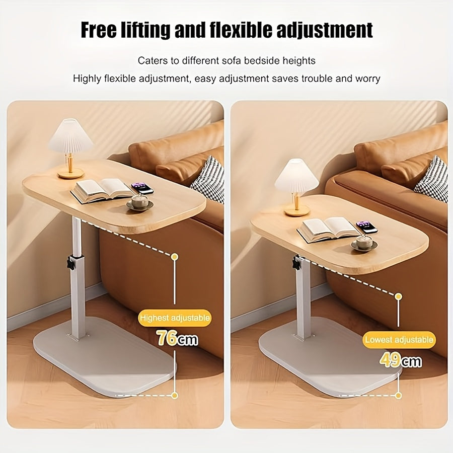 Adjustable Height & Rotating Side Table - Heavy-Duty Manual Lift Coffee Table with Sturdy Base, Space-Saving Compact Design for Living Room, Bedroom,
