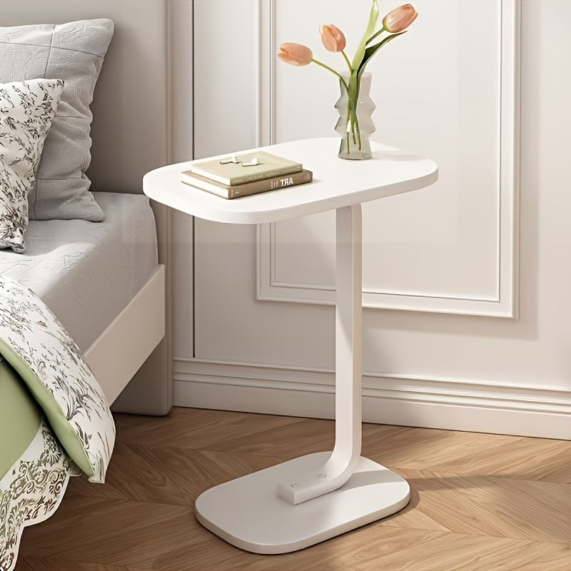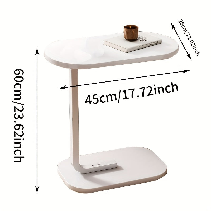 C-Shaped End Table Sturdy Steel Frame & Space Saving - C-Shaped End Table With Oval Base - Compact White Side Table For Small Couch\u002FBed\u002FLounger