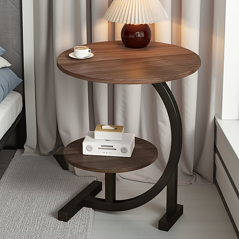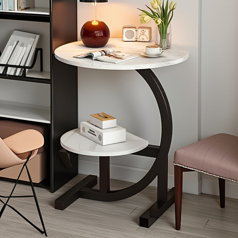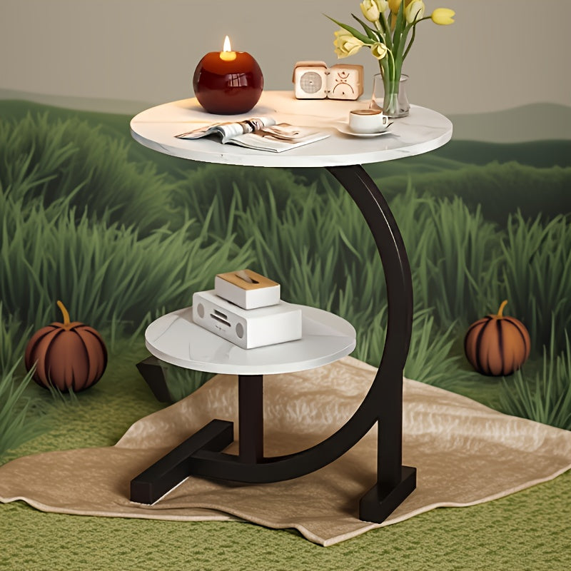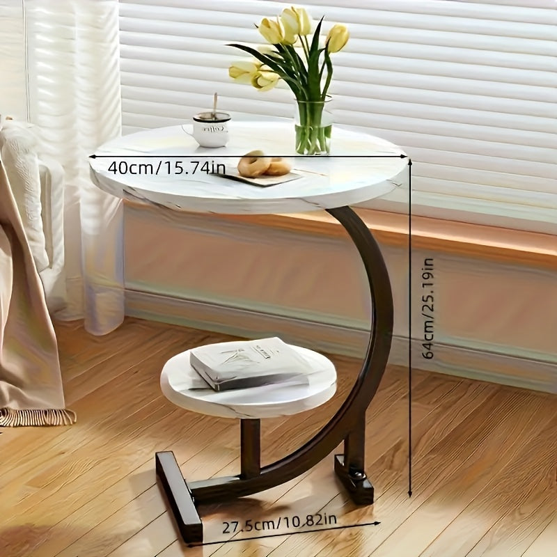 C-Shaped Metal Frame Small Coffee Table with Storage Shelf, Light Luxury Minimalist Nordic Style Side Table by Sofa, Bedside Side Cabinet