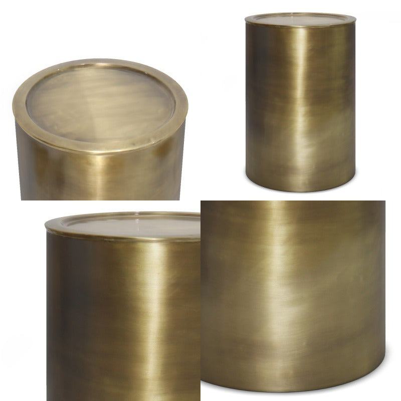 Corbin Antique Golden Metal Side Table - No Assembly Needed, Heavy-Duty Circular Base, Vintage Industrial\u002FClassic Decor for Living Room, Bedroom,