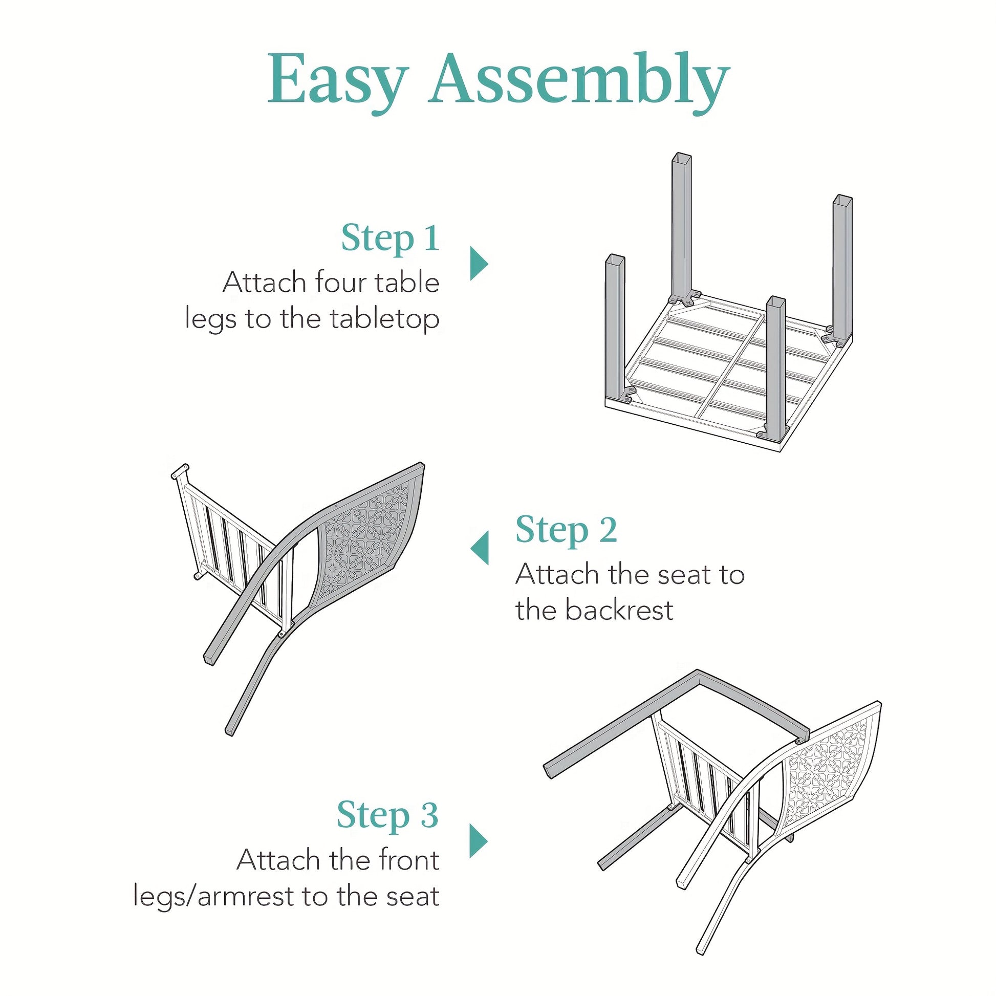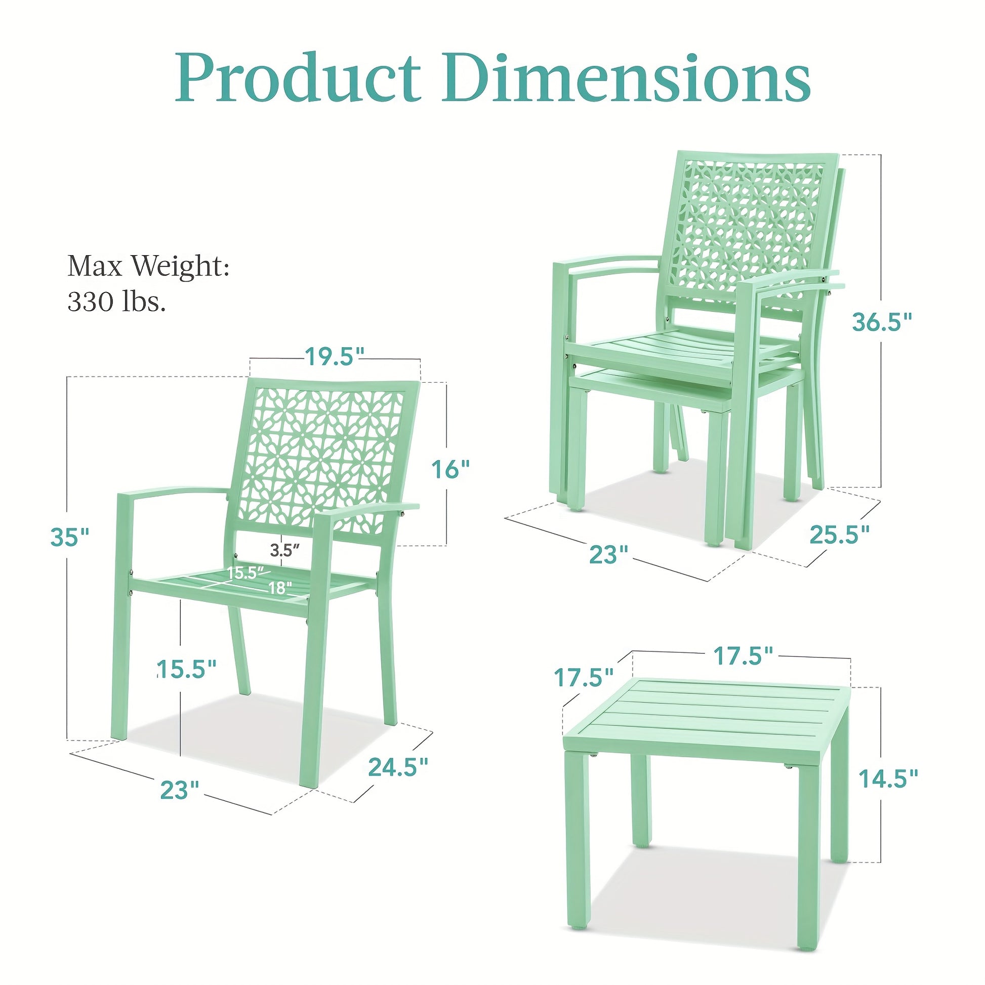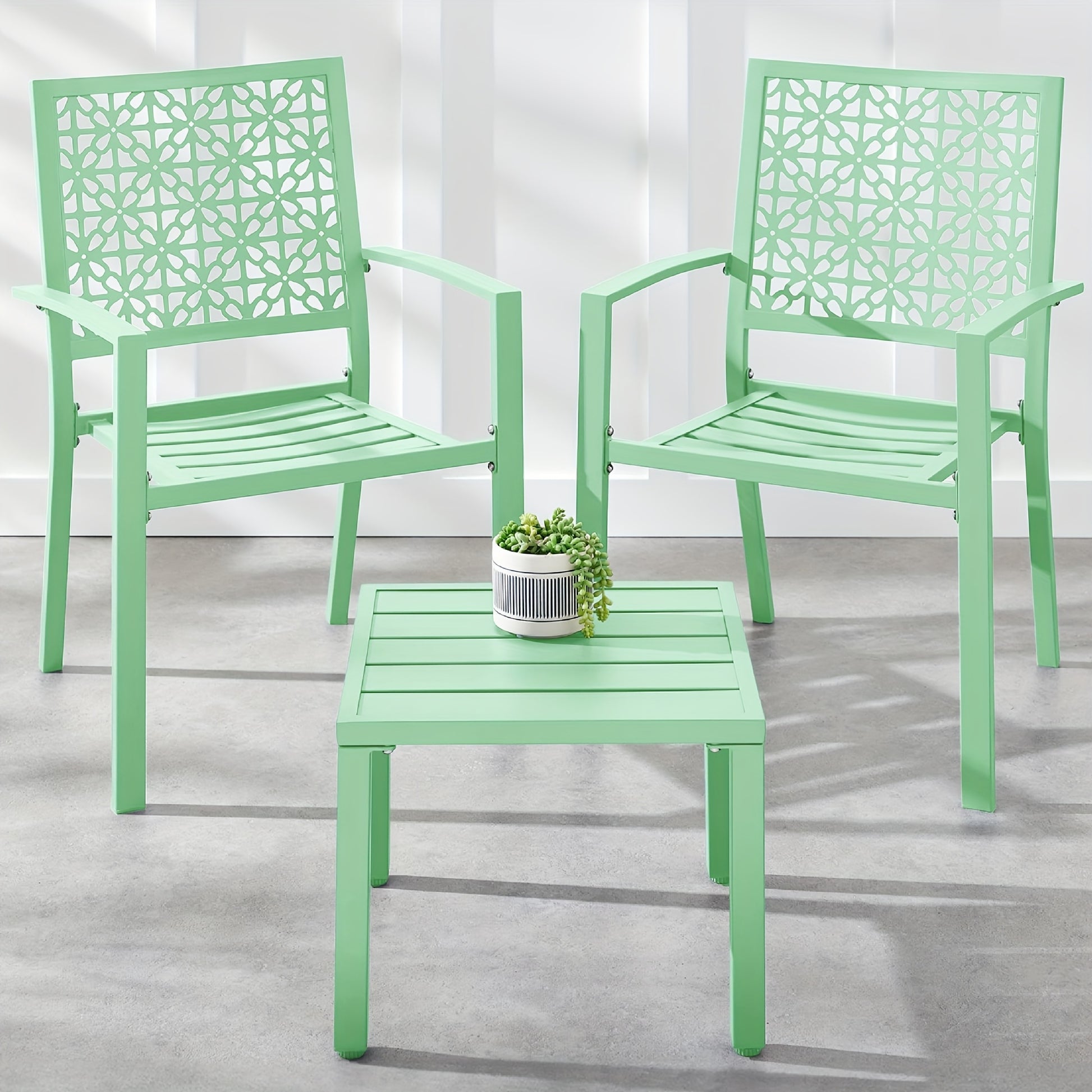 GAOMON 3pcs Bistro Set, Outdoor Bistro Set, Stackable Metal Square Table And Chairs, Small Conversation Set Patio Furniture for Backyard, Deck, Balcony, Patio, Pool
