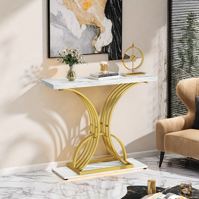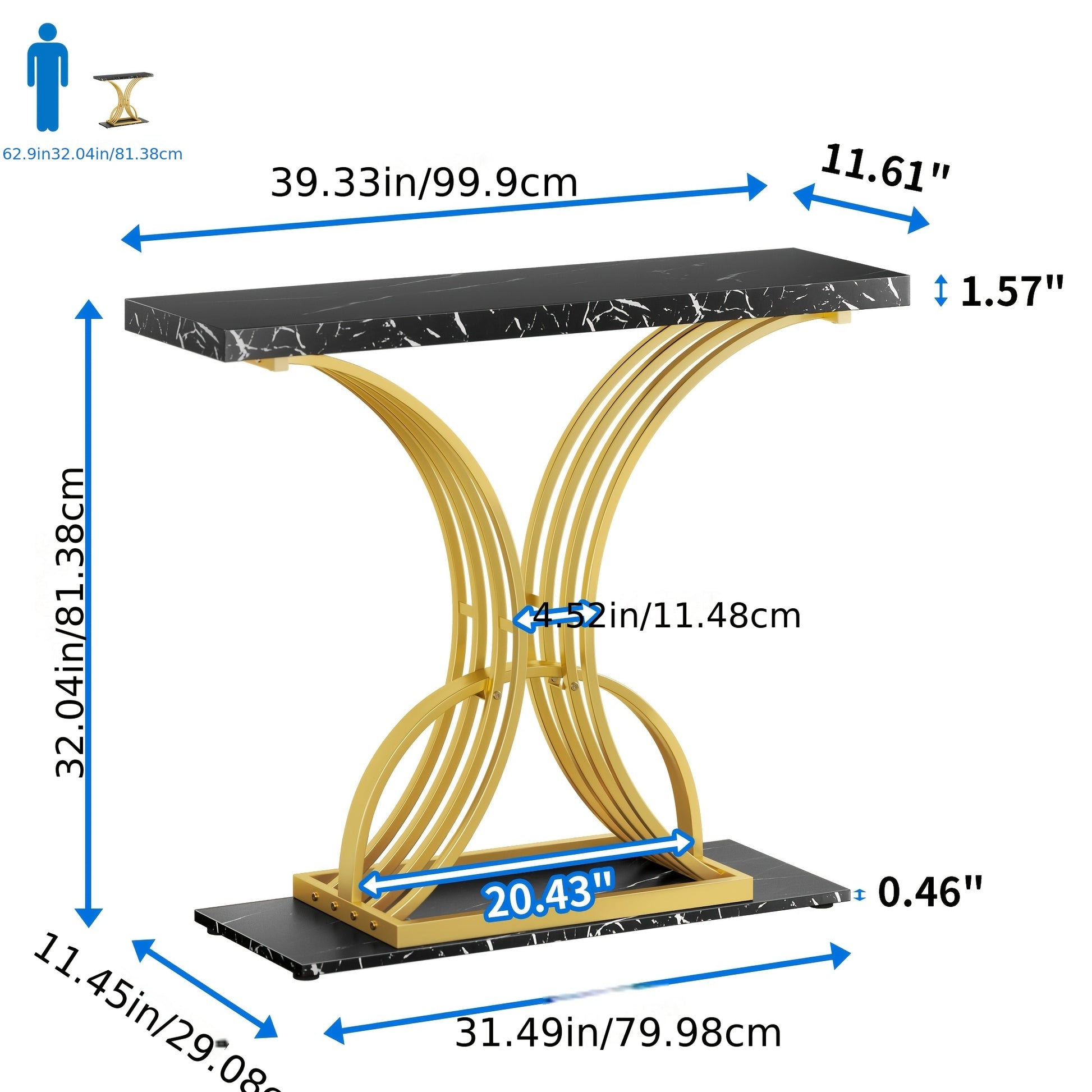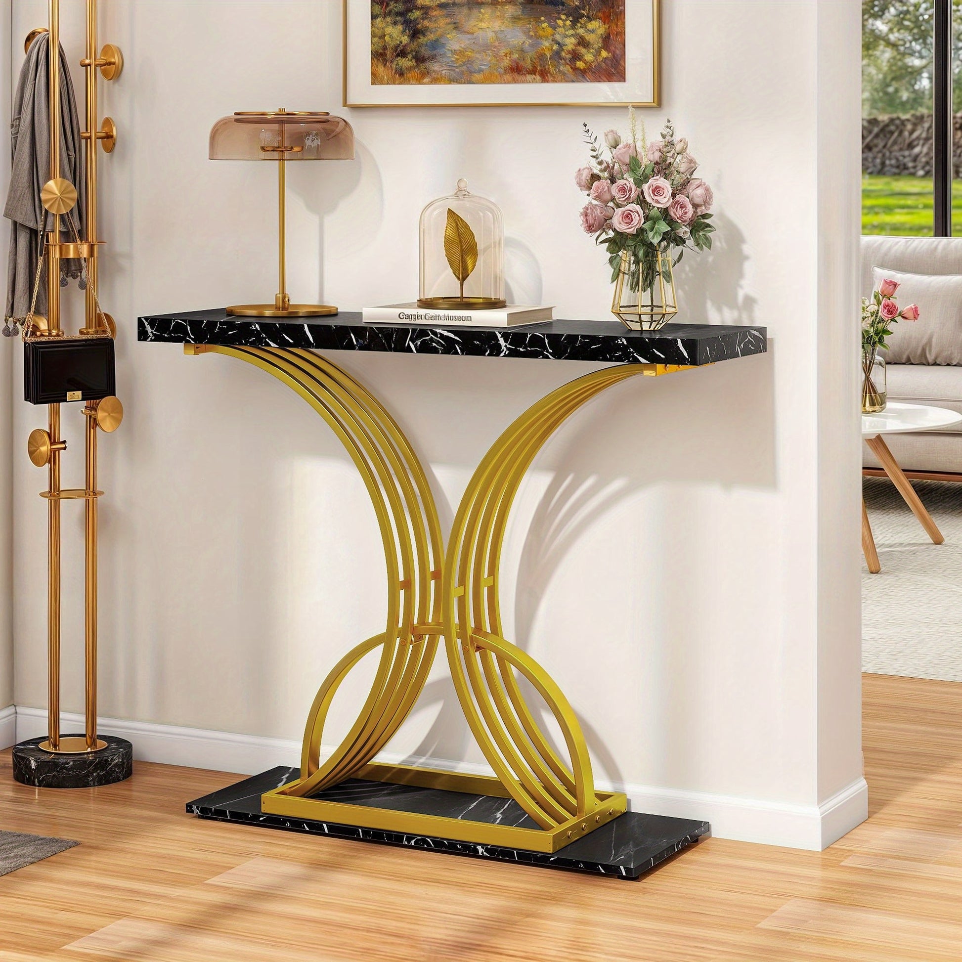 Roadrix Luxurious Golden Console Table, 40-Inch Modern Entryway Narrow Sofa Table, Faux Marble White\u002FBlack Top, Stylish Hallway Accent Table For Living Room,