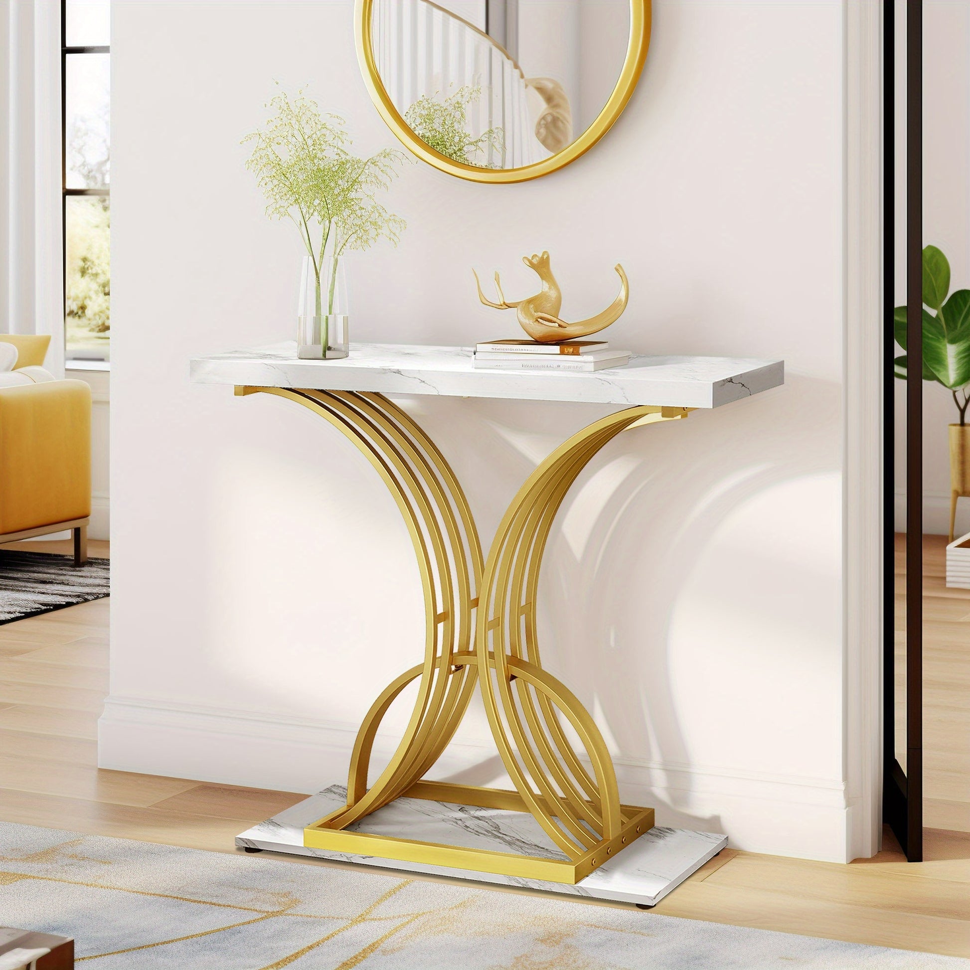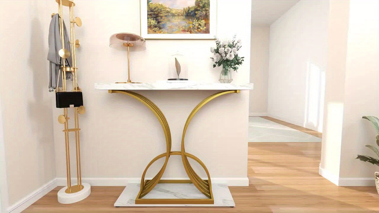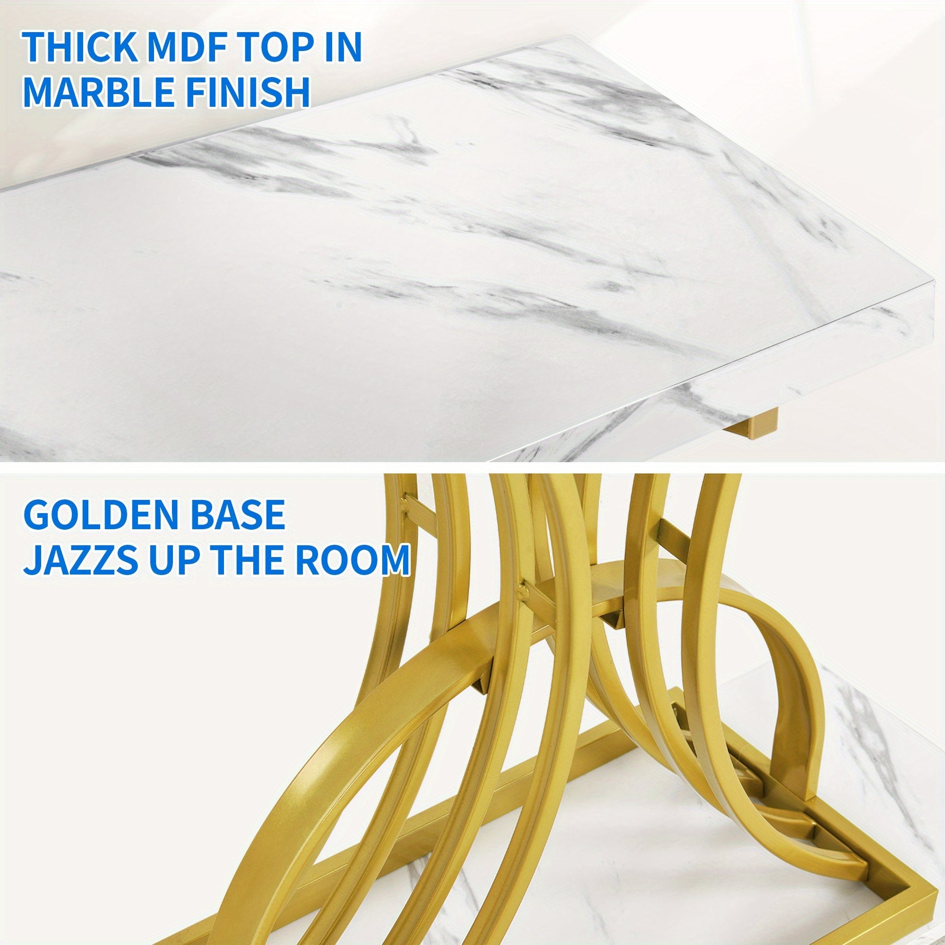 Roadrix Luxurious Golden Console Table, 40-Inch Modern Entryway Narrow Sofa Table, Faux Marble White\u002FBlack Top, Stylish Hallway Accent Table For Living Room,