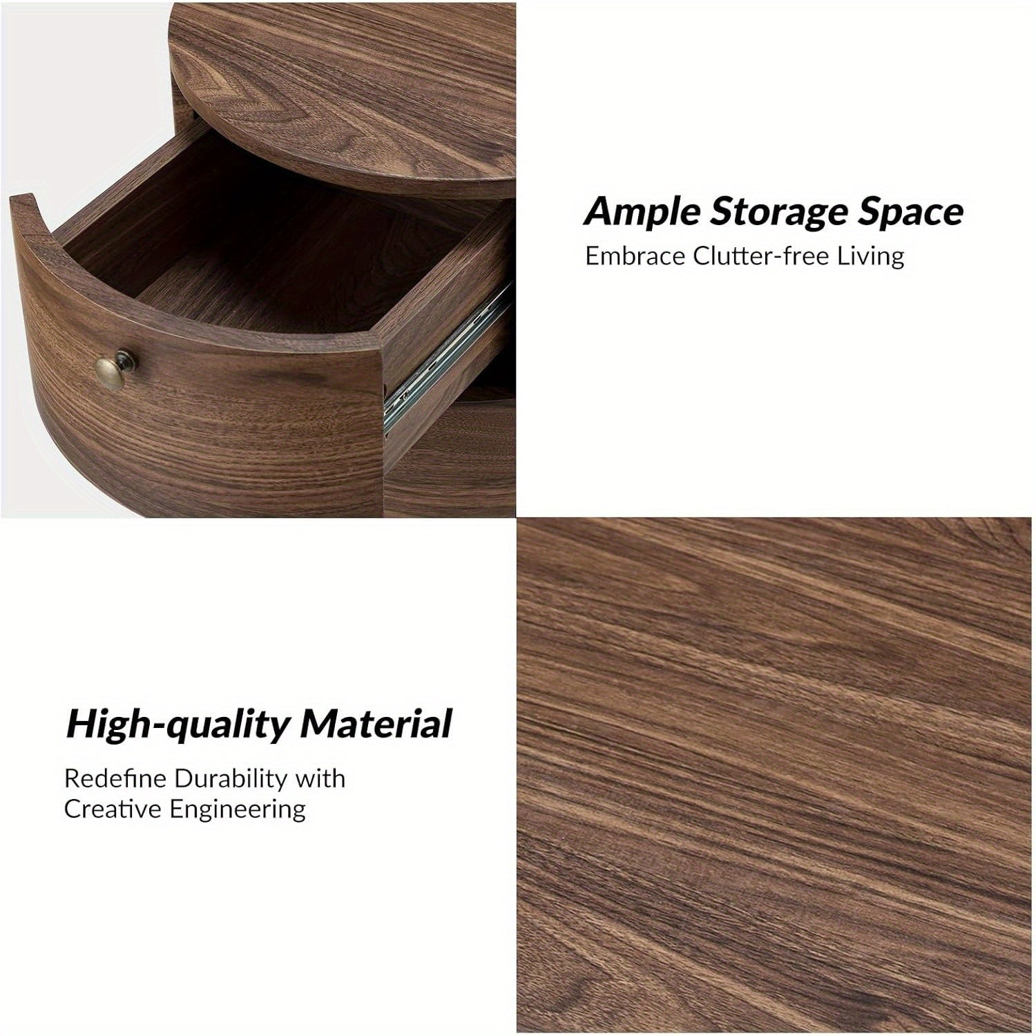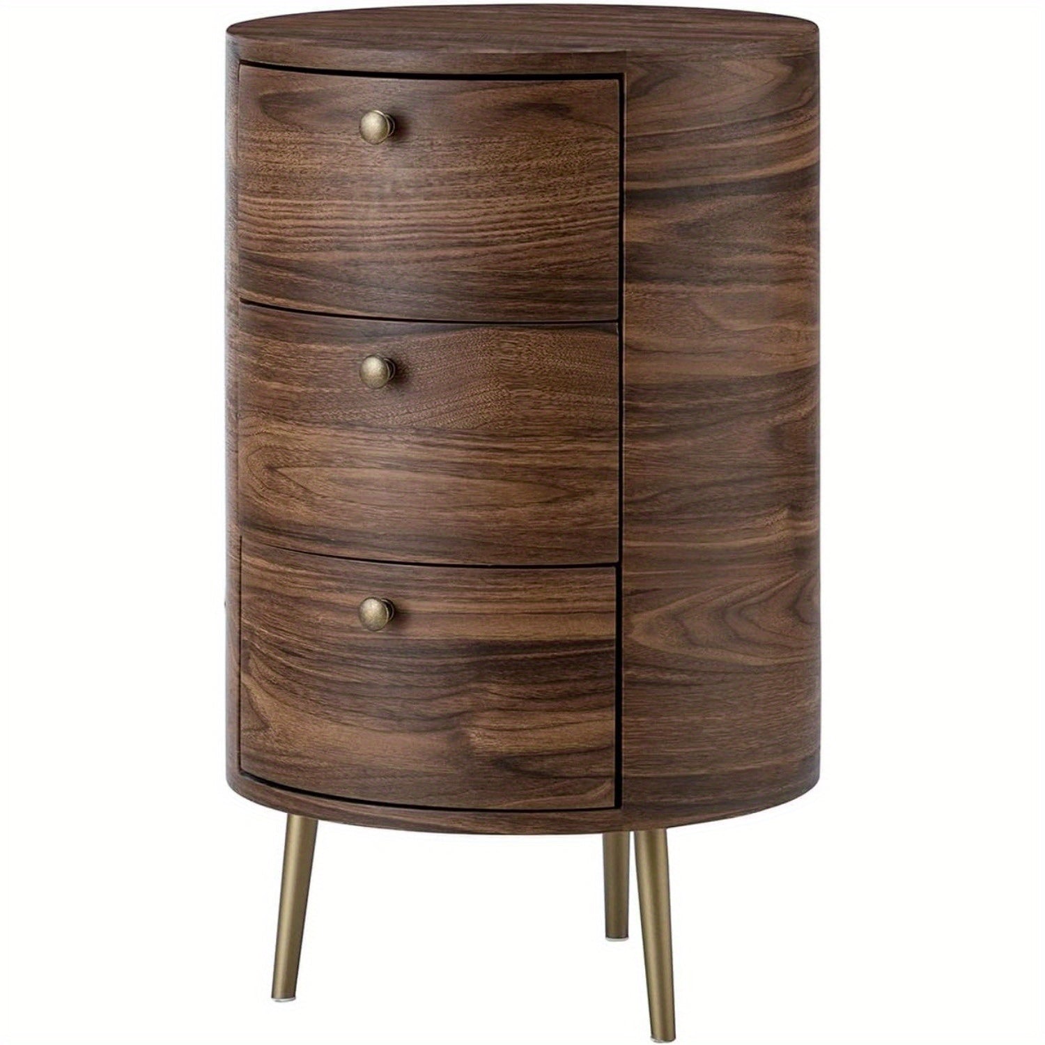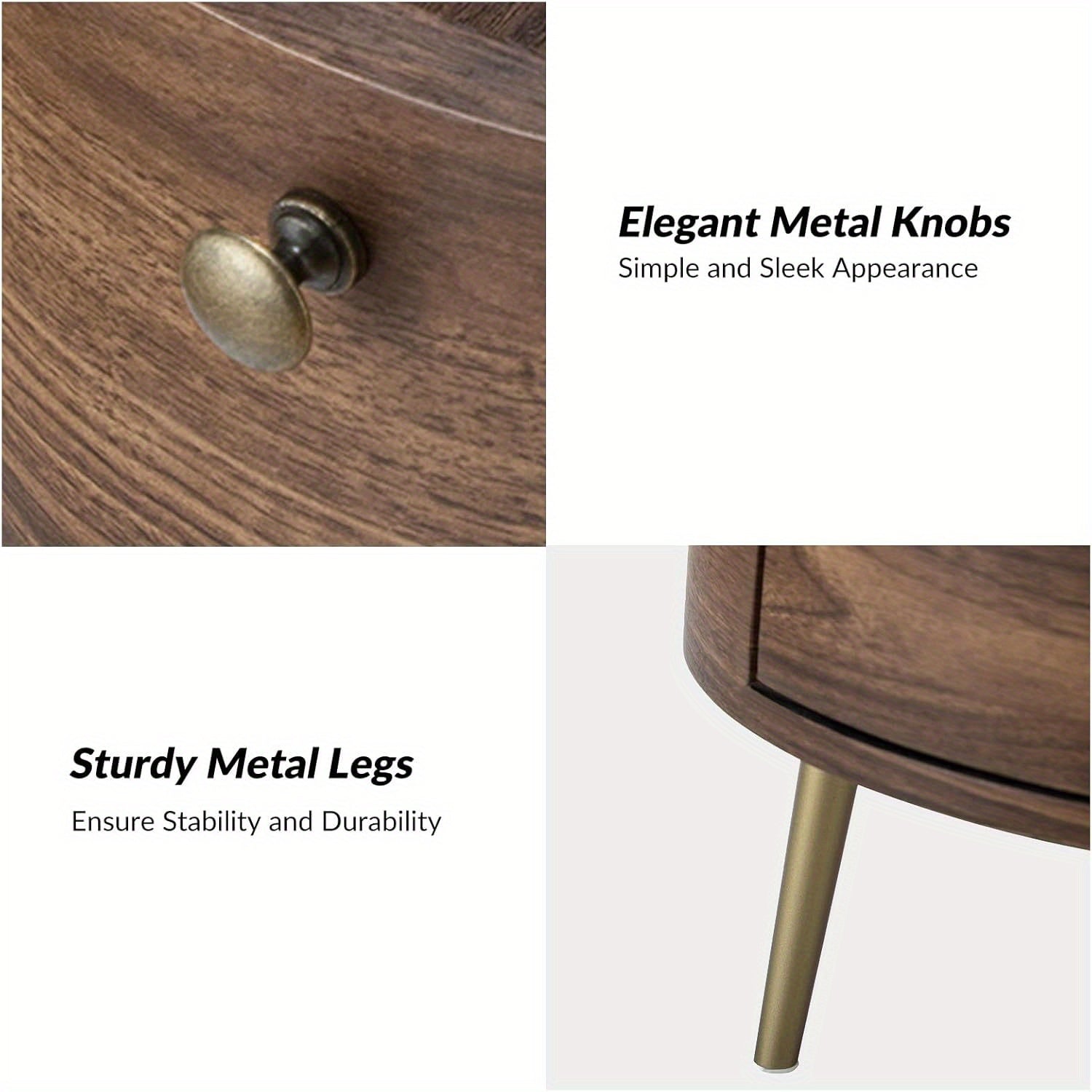 Round End Table with 3 Storage Drawers, Mid Century Modern Sofa Side Table with Metal Legs, Farmhouse Wood Small Side Table for Living Room,