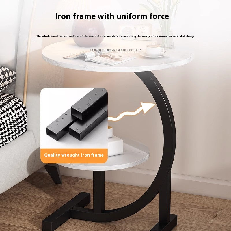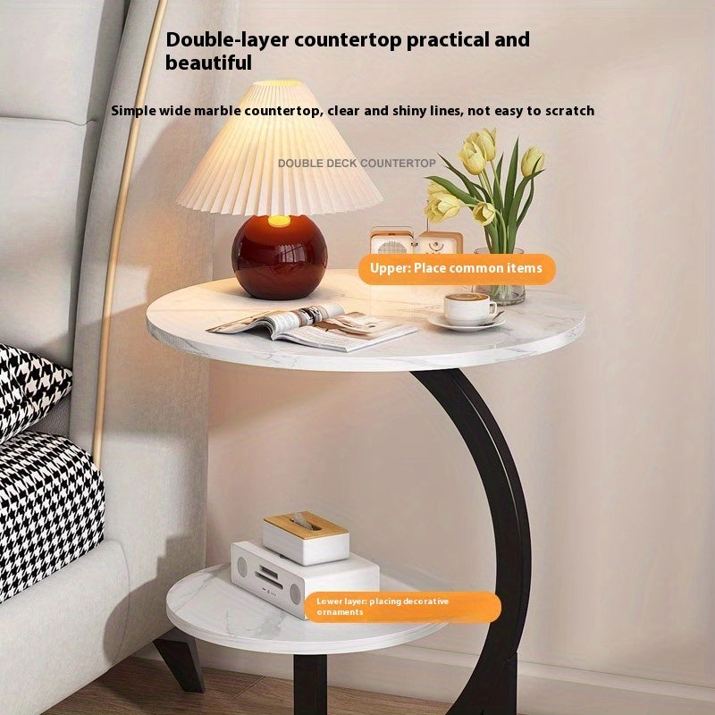 Simple Luxury Solid Wood Circular Coffee Table - Modern Double-Layer Sofa Side Cabinet, Creative Lightweight Luxury Side Table,