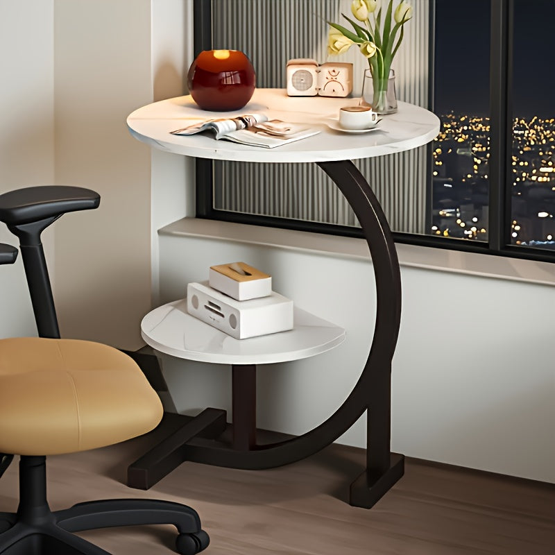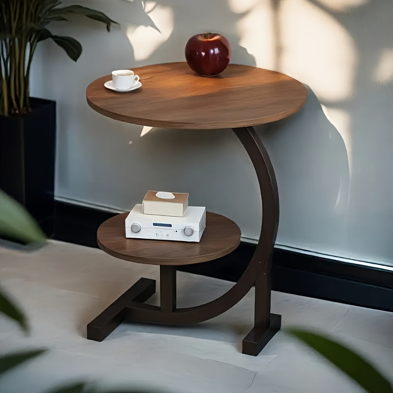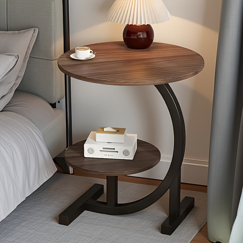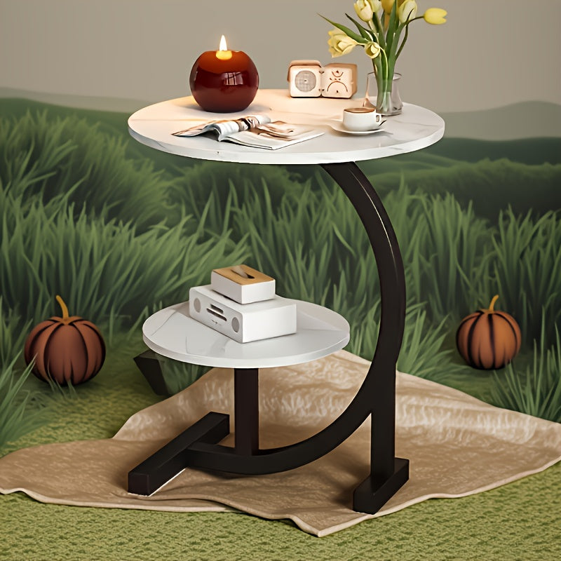 Space-Saving C-Shaped Side Table with Heavy-Duty Metal Brackets - Nordic Modern Corner Accent table, Compact Two-Tier Storage, Easy Assembly for Living Room,